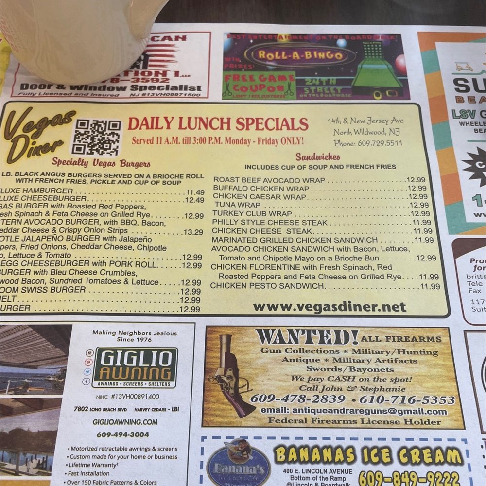 Vegas Diner & Restaurant, situated in North Wildwood, NJ, offers a delightful American diner experience with a focus on seafood. With a diverse menu that caters to both vegetarians and meat-lovers, this establishment provides a range of options for breakfast, lunch, dinner, and dessert. Customers rave about the generous portions and friendly service, making it a must-visit spot for families and groups. The cozy diner decor adds to the classic atmosphere, enhanced by background Christian music. Standout dishes like the Maryland crab soup and stuffed flounder consistently impress diners, with reasonable prices and ample sides adding to the value. Whether you're craving a hearty breakfast or a satisfying dinner, Vegas Diner & Restaurant is sure to leave you coming back for more.