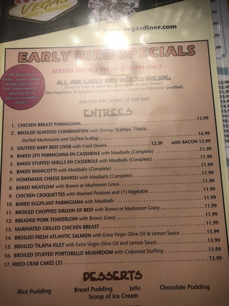 Vegas Diner & Restaurant Menu